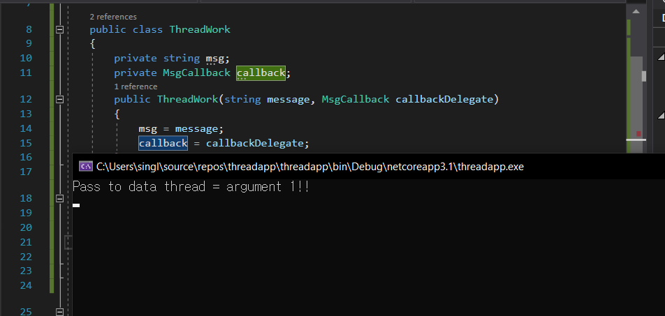 ThreadWork tws = new ThreadWork("argument 1!!", new MsgCallback(ResultCallback));